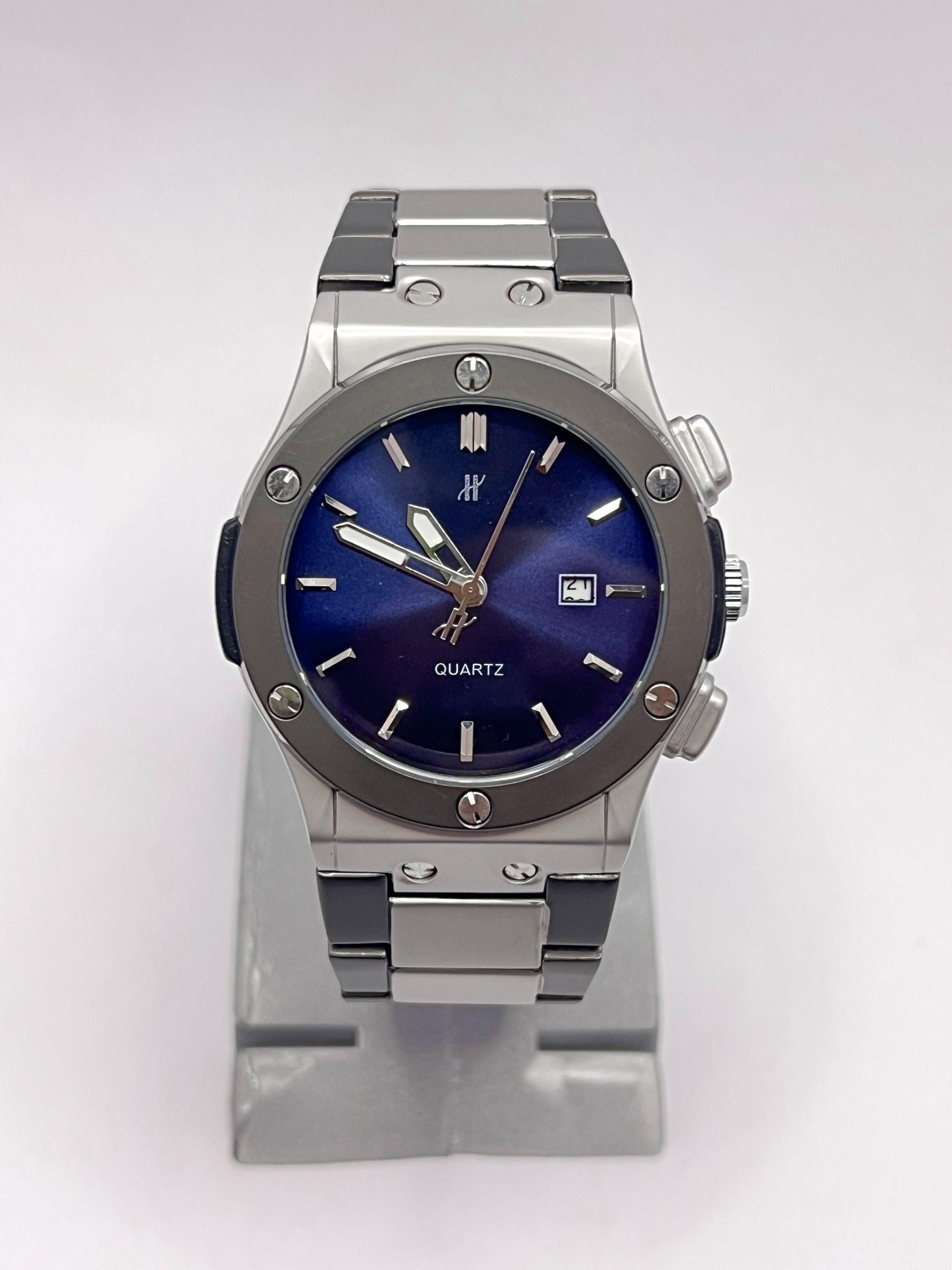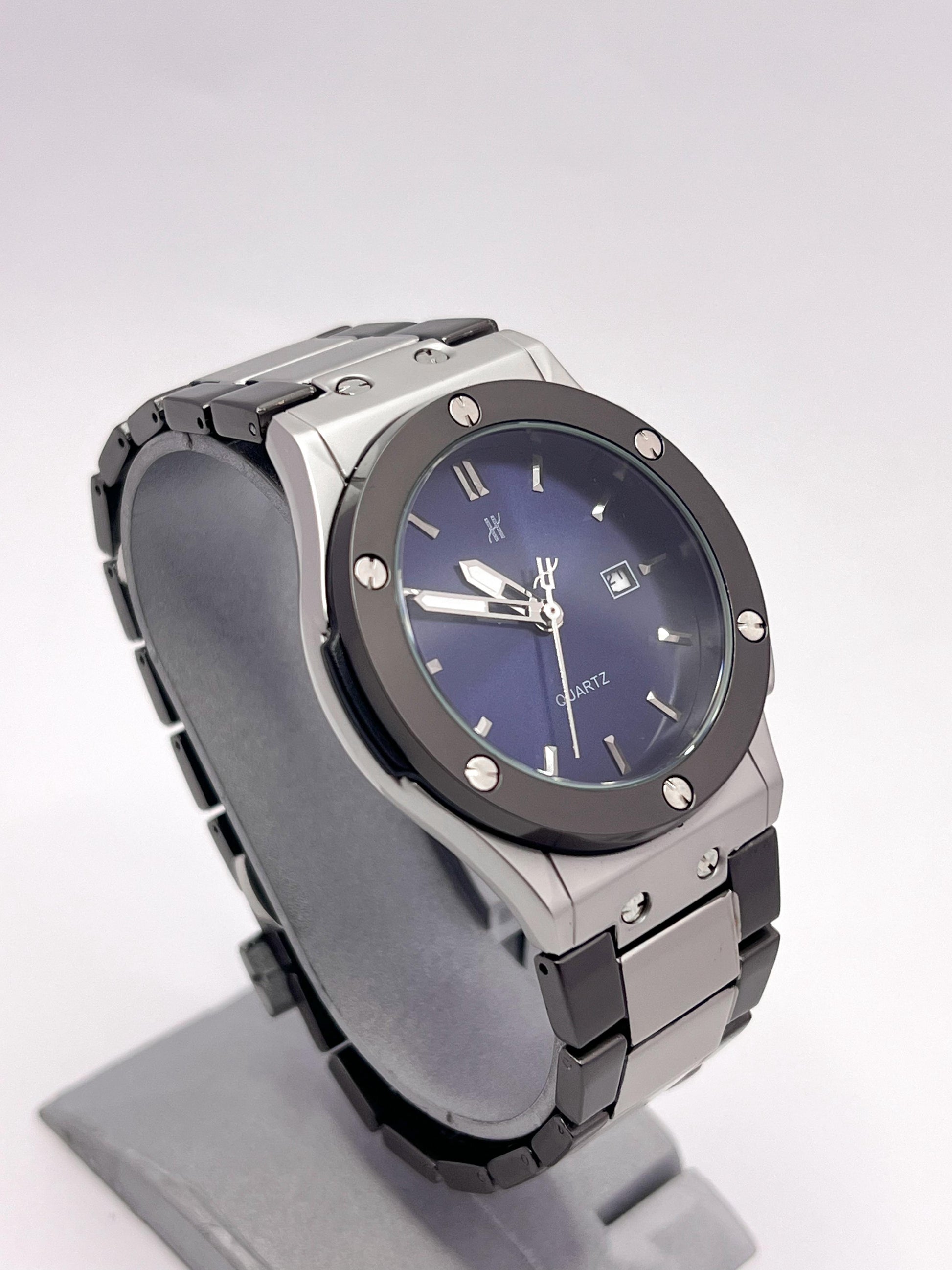 Make a bold statement with this Hublot-inspired Classic Fusion men's watch — a perfect blend of luxury style and everyday wearability. Designed to resemble the iconic Hublot Classic Fusion, this timepiece features a striking blue dial, signature “H” screw bezel design, and a durable stainless steel finish.