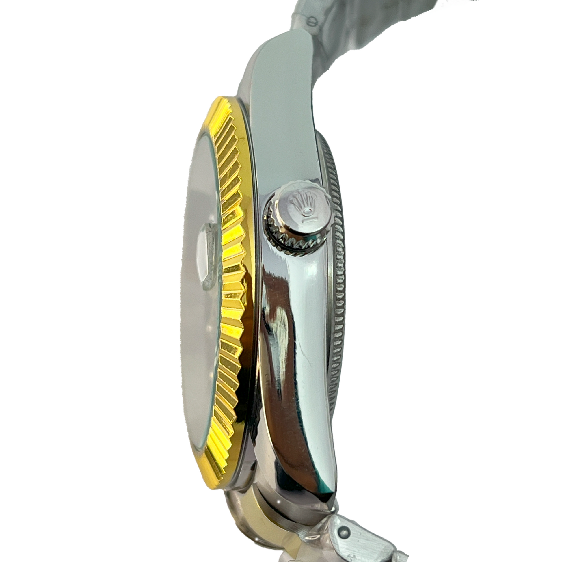 Rolex Style Two-Tone Blue Dial Watch – Day-Date Edition (Model: RX-DD02-BLU)